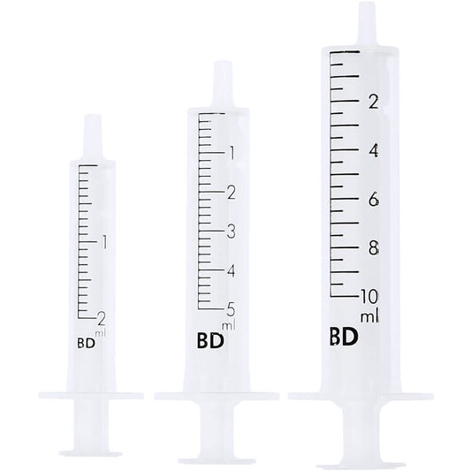 Spritzen sind in den Größen 2 ml, 5 ml, 10 ml und 20 ml erhältlich. Sie können zwischen den Marken Emerald und Discardit wählen. Alle Spritzen verfügen über eine gut sichtbare Skala, einen Luer-Slip- oder Luer-Lock-Anschluss und werden steril einzeln verpackt für den Einmalgebrauch geliefert.